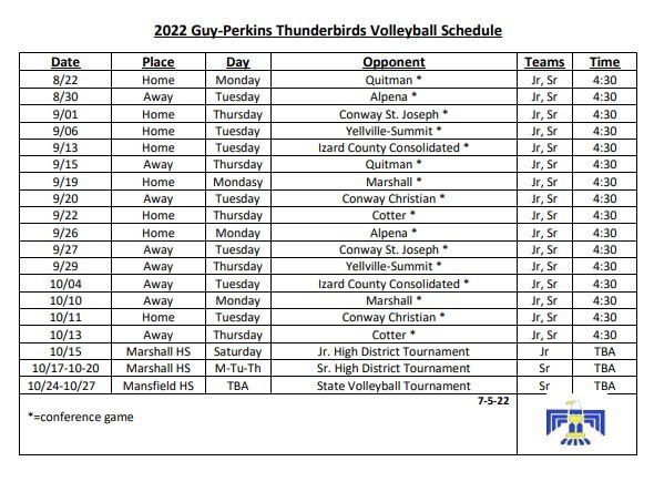 2022 Guy-Perkins Volleyball Schedule Released